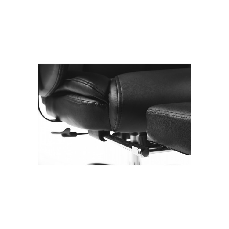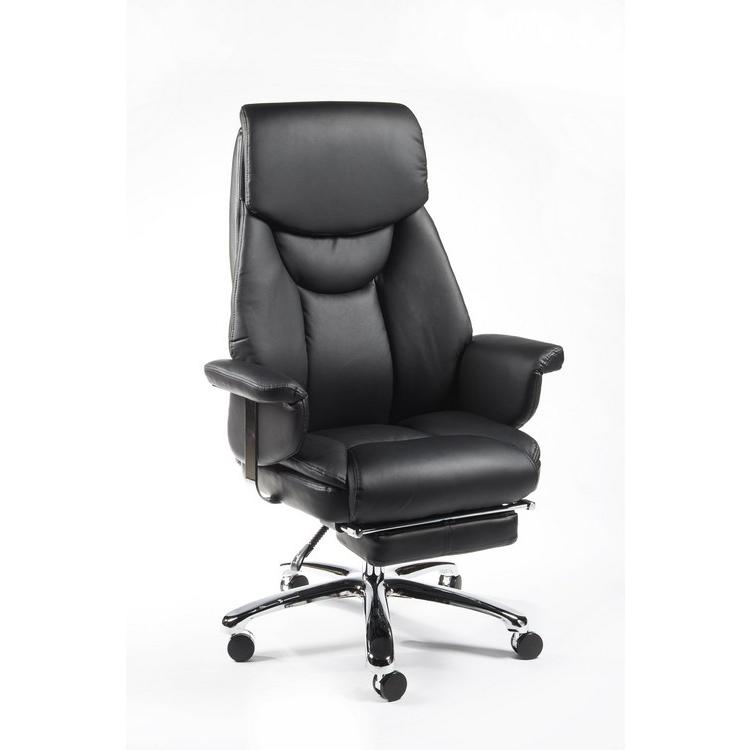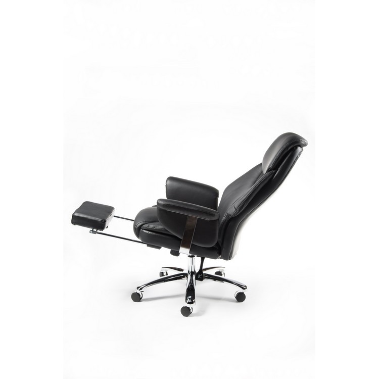 Кресло для руководителя высшего звена в классическом стиле. Обивка выполнена из высококачественной кожи. Роскошное кресло также имеет выдвижную опору для ног, которая позволяет принять лежачее положение в минуты отдыха, снимает нагрузку с позвоночника, улучшает кровообращение. Хромированный газ-патрон, ролики с вставкой "хром", хромированные части подлокотника делают модель стильной, с элементами дизайна в стиле хай-тек. Механизм качания мультиблок с возможностью фиксации в любом положении. Кресло подойдет людям высокого роста, плотной комплекции. Максимальная нагрузка 120 кг.