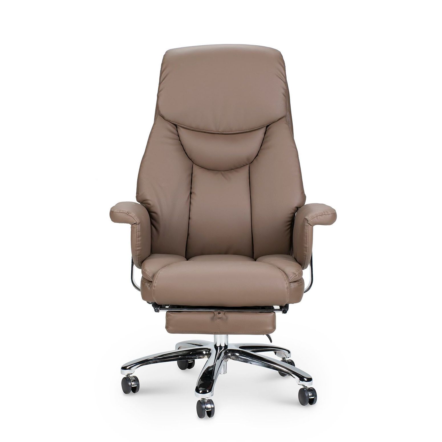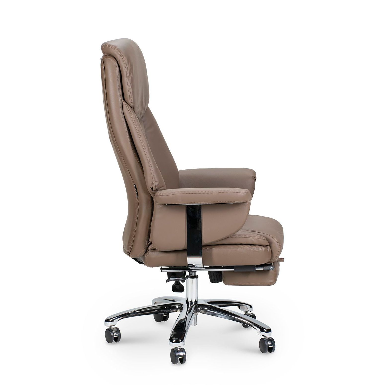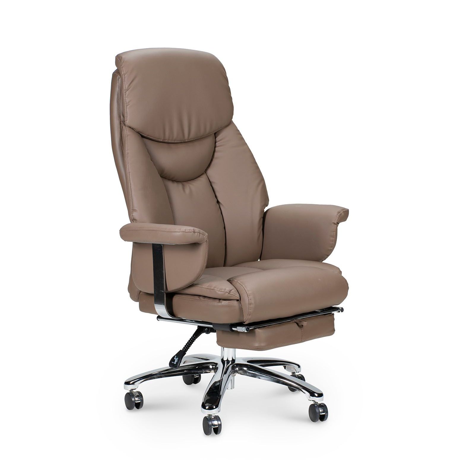 Кресло для руководителя высшего звена в классическом стиле. . Обивка выполнена из высококачественной экокожи. Роскошное кресло также имеет выдвижную опору для ног, которая позволяет принять лежачее положение в минуты отдыха, снимает нагрузку с позвоночника, улучшает кровообращение. Хромированный газ-патрон, ролики с вставкой "хром", хромированные части подлокотника делают модель стильной, с элементами дизайна в стиле хай-тек. Механизм качания мультиблок с возможностью фиксации в любом положении. Кресло подойдет людям высокого роста, плотной комплекции. Максимальная нагрузка 120 кг.