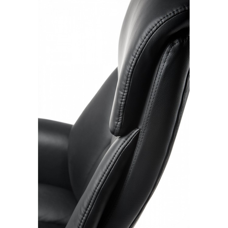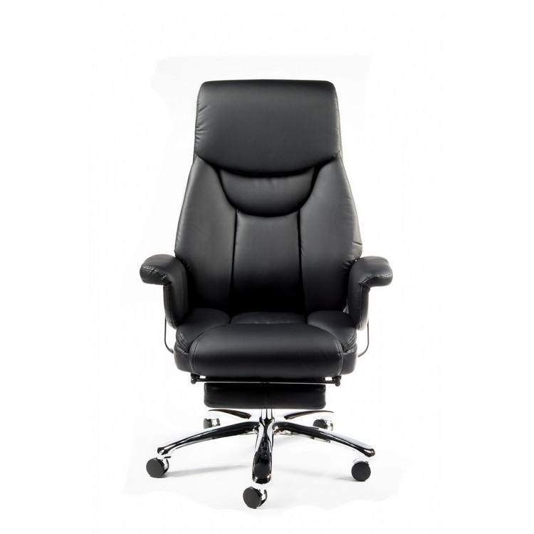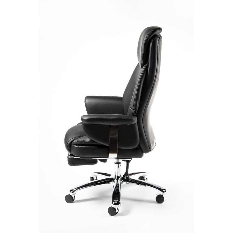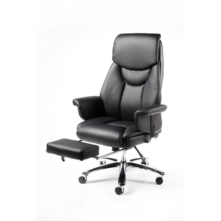 Выдвижная подножка для поддержки ног позволяет принять лежачее положение в минуты отдыха, снимает нагрузку с позвоночника, улучшает кровообращение. Хромированный газ-патрон, ролики с вставкой "хром", хромированные части подлокотника делают модель стильной, с элементами дизайна в стиле хай-тек.