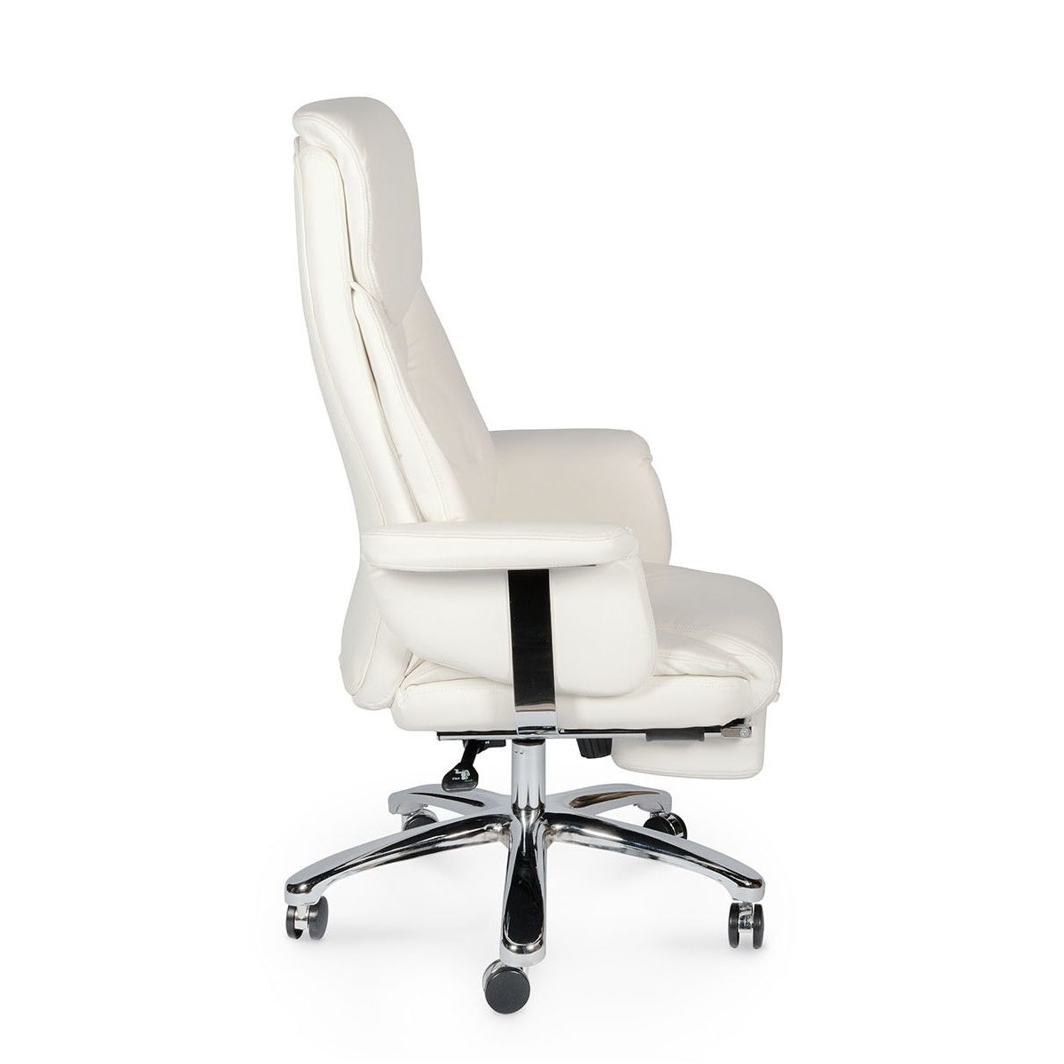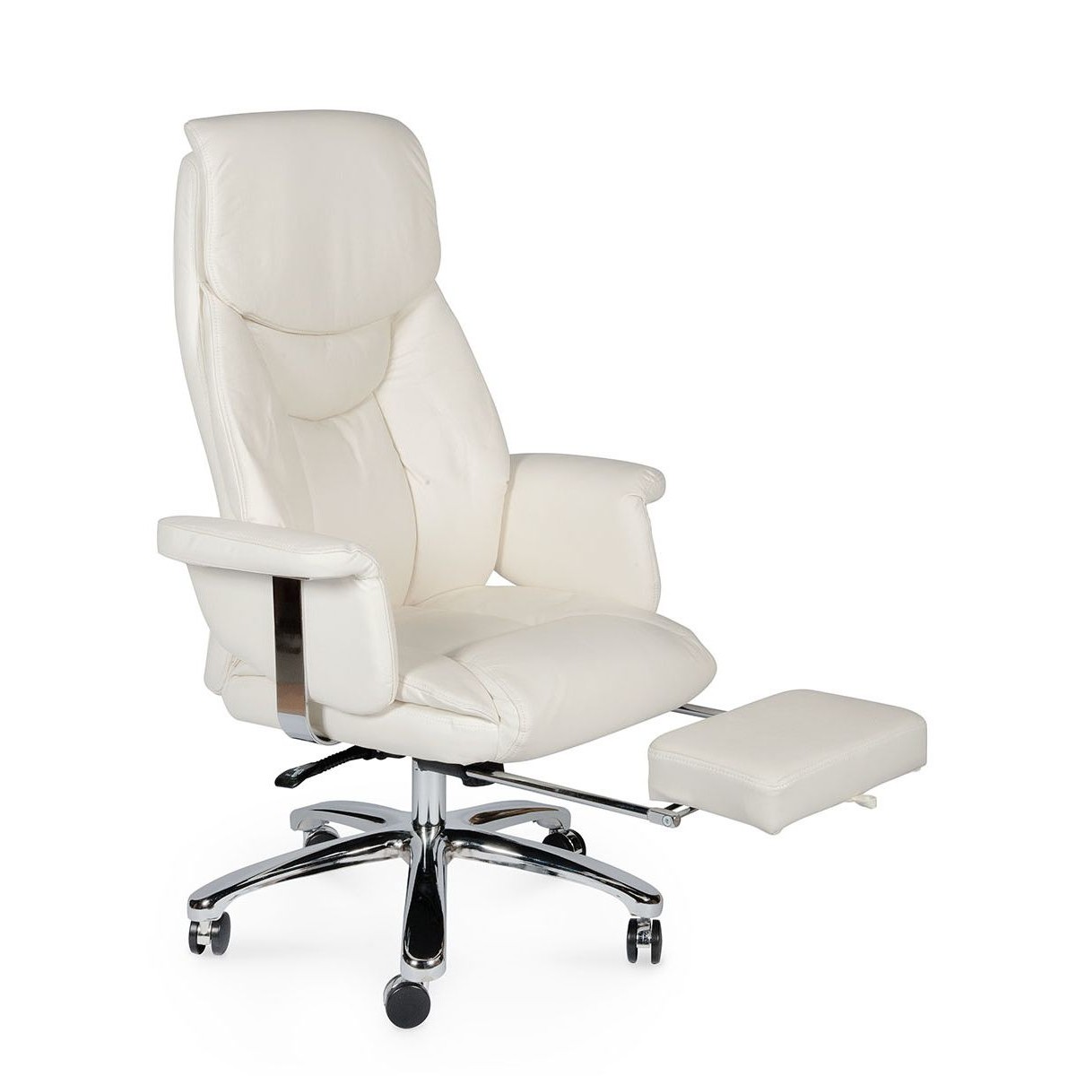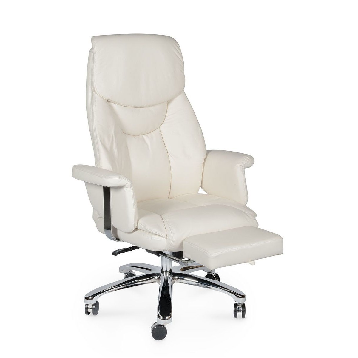 Кресло для руководителя высшего звена в классическом стиле. . Обивка выполнена из высококачественной экокожи. Роскошное кресло также имеет выдвижную опору для ног, которая позволяет принять лежачее положение в минуты отдыха, снимает нагрузку с позвоночника, улучшает кровообращение. Хромированный газ-патрон, ролики с вставкой "хром", хромированные части подлокотника делают модель стильной, с элементами дизайна в стиле хай-тек. Механизм качания мультиблок с возможностью фиксации в любом положении. Кресло подойдет людям высокого роста, плотной комплекции. Максимальная нагрузка 120 кг.