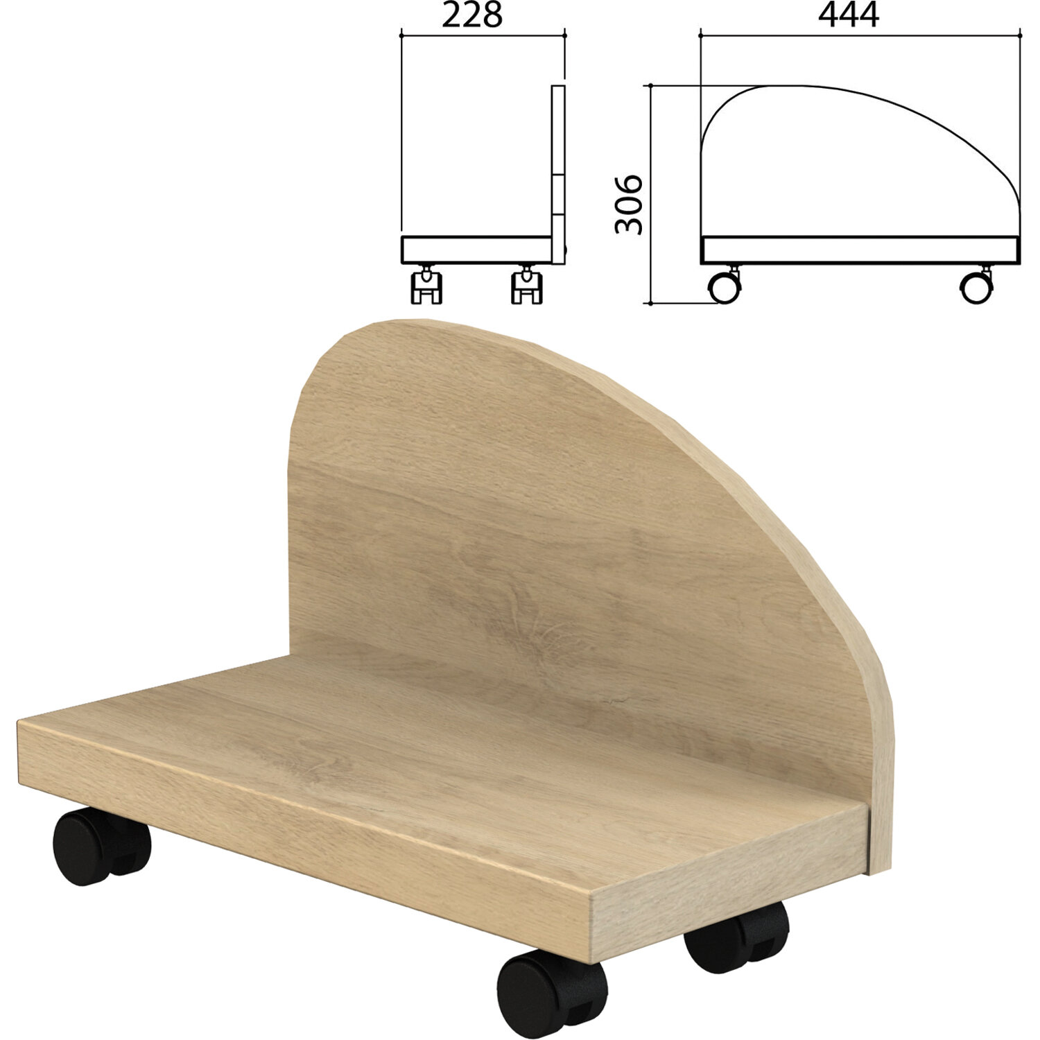 Стенка вертикальная - ЛДСП 18 мм.. Платформа - ЛДСП 38 мм.. Кромка на платформе - ПВХ 2 мм.. Колесные опоры.. Поставляется в разобранном виде.. В комплект входит крепеж и инструкция по сборке.. Цвет - кронберг.. Размер (ШхГхВ) - 228х444х306 мм.